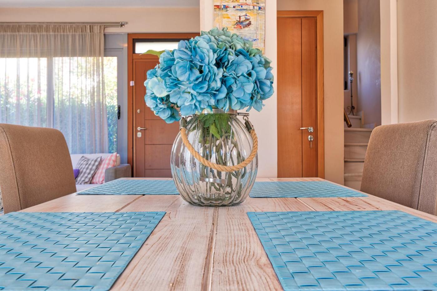 Villa. Featuring a private entrance, this air-conditioned villa consists of 1 living room, 2 separate bedrooms and 2 bathrooms with a shower and a hairdryer. Guests will find a stovetop, a refrigerator, a dishwasher and kitchenware in the well-fitted kitchen. The villa also offers a barbecue. Boasting a terrace with sea views, this villa also provides a washing machine and a flat-screen TV. The unit offers 3 beds.