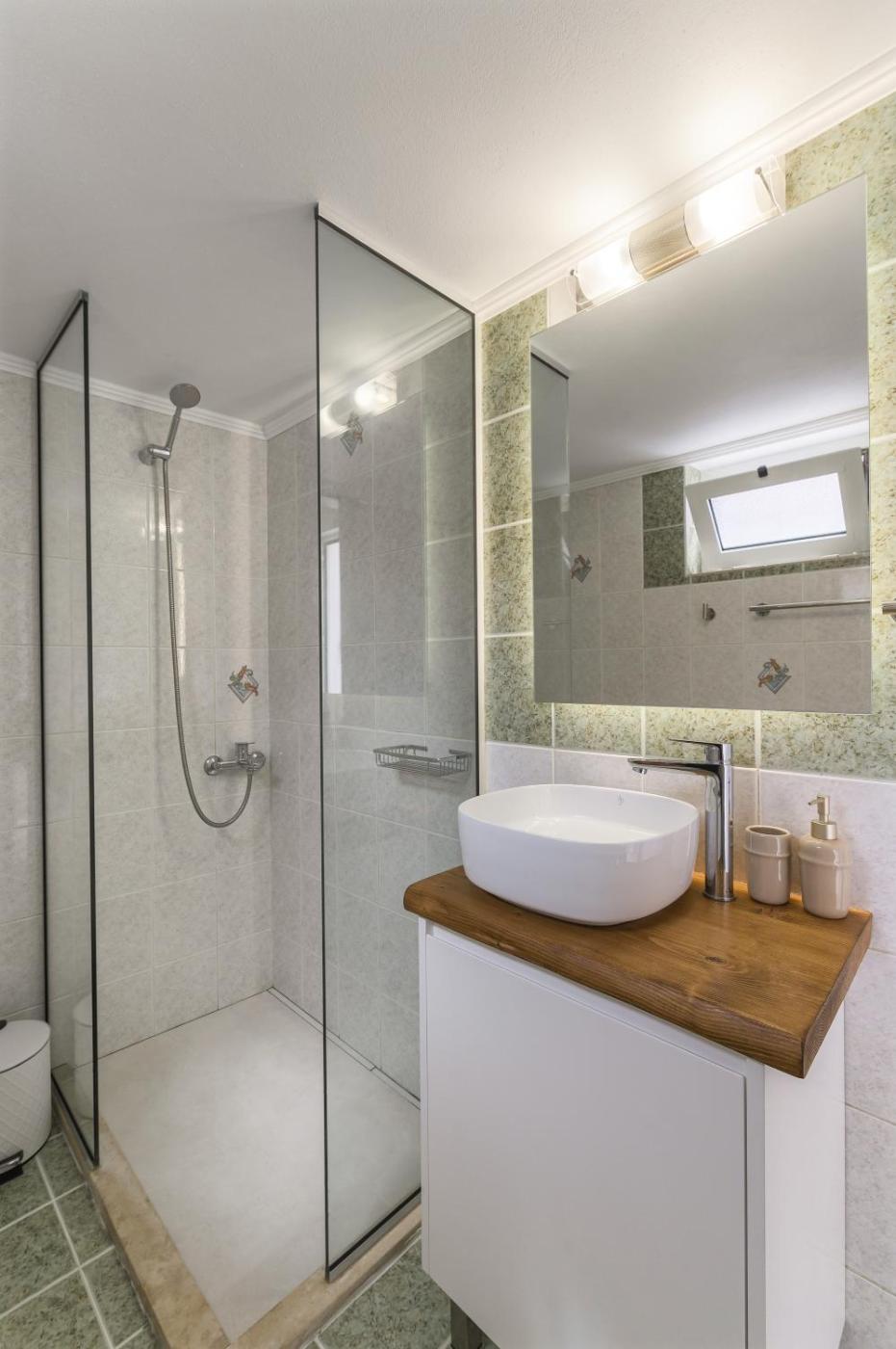 One-Bedroom Apartment. Boasting a private entrance, this air-conditioned apartment comes with 1 living room, 1 separate bedroom and 1 bathroom with a walk-in shower and a hairdryer. In the well-fitted kitchen, guests will find a stovetop, a refrigerator, kitchenware and an oven. There is a washing machine, a tea and coffee maker and a terrace and complimentary winechampagne is available for guests. The unit has 2 beds.