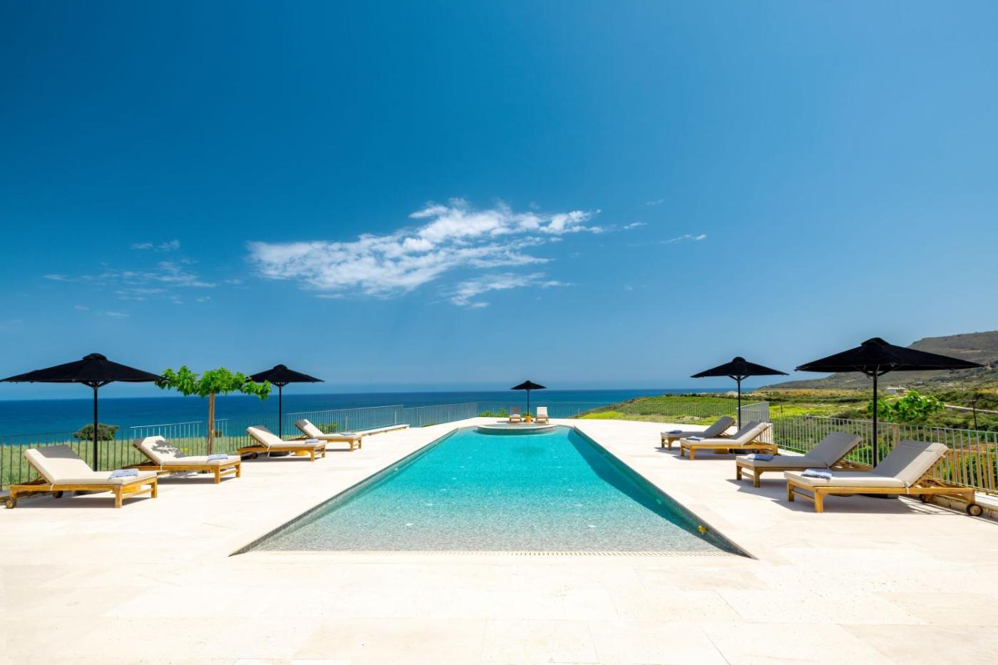Villa with Private Pool. This luxurious villa offers a pool with a view, a hot tub and a fireplace. This spacious villa consists of 1 living room, 5 separate bedrooms and 7 bathrooms with a shower and free toiletries. Guests will find a stovetop, a refrigerator, a dishwasher and kitchenware in the well-equipped kitchen. The villa also offers a barbecue. The air-conditioned villa provides a flat-screen TV with streaming services, a washing machine, a private entrance, a tea and coffee maker as well as sea views. The unit offers 5 beds.