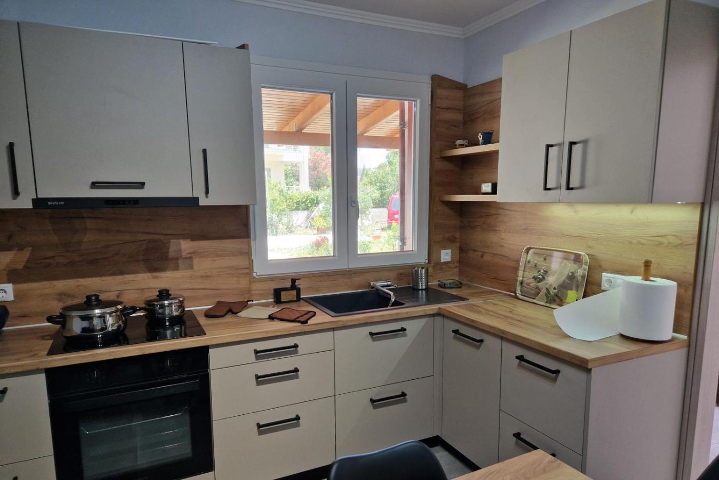One-Bedroom House. Boasting a private entrance, this air-conditioned holiday home comes with 1 living room, 1 separate bedroom and 1 bathroom with a shower and a hairdryer. In the well-fitted kitchen, guests will find a stovetop, a refrigerator, kitchenware and an oven. Featuring a terrace with garden views, this holiday home also features a washing machine and a flat-screen TV with satellite channels. The unit has 2 beds.