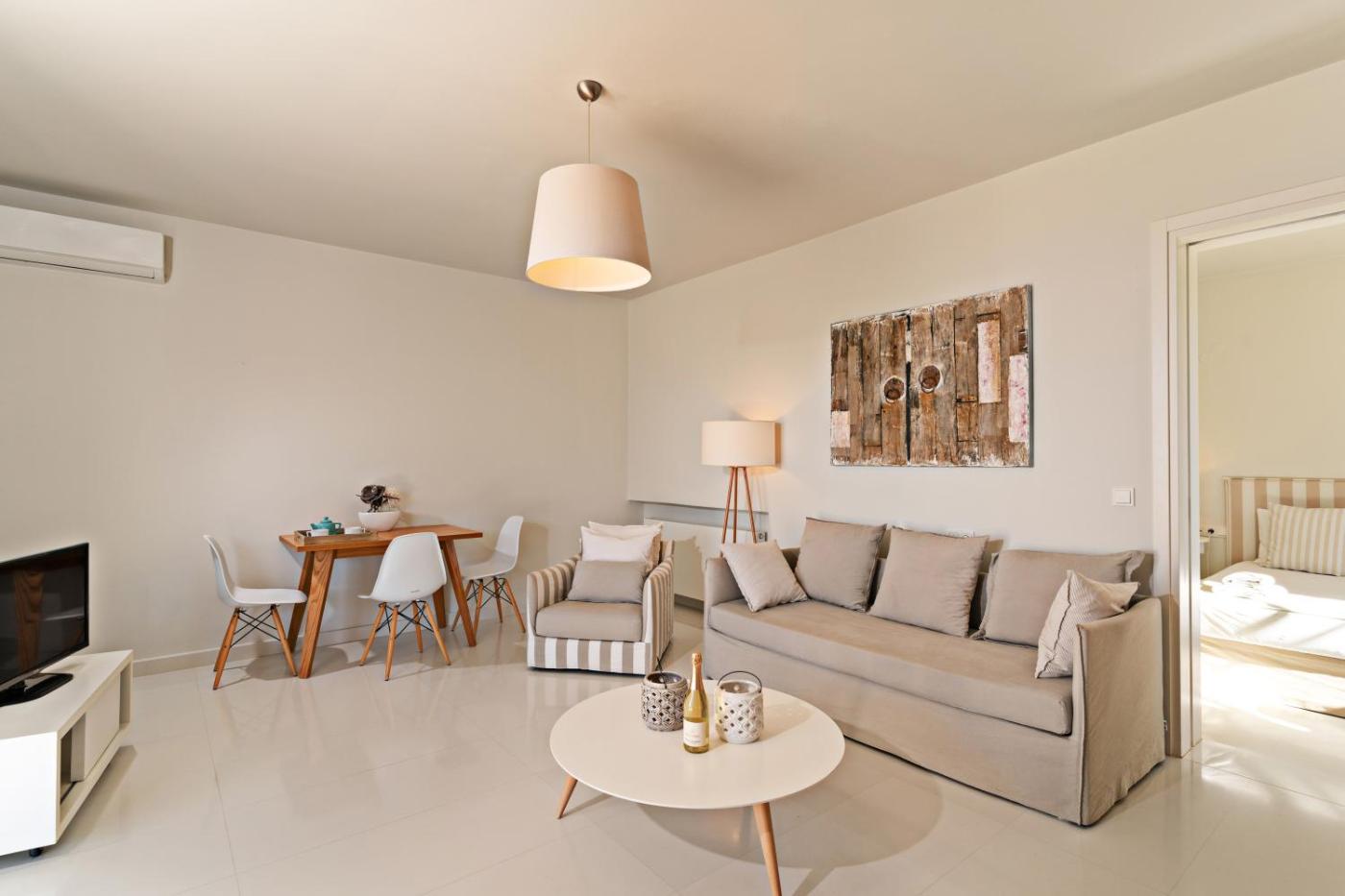 One-Bedroom Apartment with Sea View and Balcony. This apartment comes with 1 living room, 1 separate bedroom and 1 bathroom with a bath and free toiletries. Meals can be prepared in the kitchen, which features a stovetop, a refrigerator, kitchenware and an oven. The air-conditioned apartment features a flat-screen TV, a washing machine, a tea and coffee maker, a seating area as well as sea views. The unit has 2 beds.