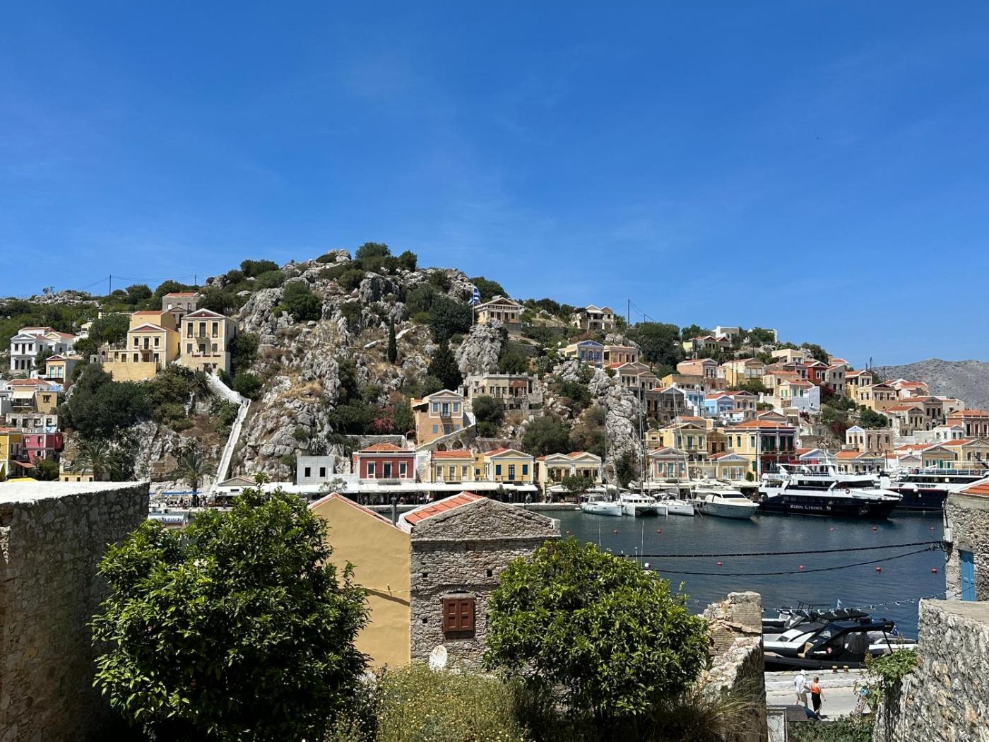 Double Room with Patio. Located on the ground floor, this air-conditioned room overlooks Symi Port and the village from its private courtyard. Fitted with vintage floors and orthopedic mattresses, it features: - free Wi-Fi - flat-screen, satellite TV - mini fridge - hairdryer - free coffee, tea, bottled water - free bottle of wine upon arrival.